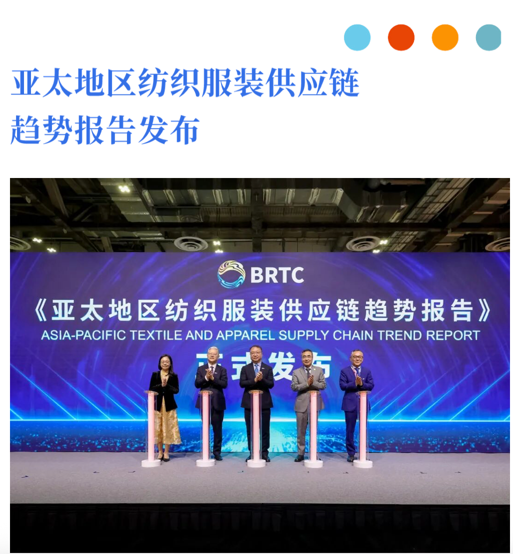 中国纺织工业联合会会长孙瑞哲、秘书长夏令敏,中国纺织工业联合会副会长、中国国际贸易促进委员会纺织行业分会会长徐迎新,中资企业(新加坡)协会秘书长付晓辉,中资企业(新加坡)协会理事、荣盛石化新加坡有限公司副总监王静一同开启发布仪式。 当前,全球纺织服装产业格局正经历深刻变革。在此进程中,亚太地区始终以开放包容、创新引领的姿态,持续为全球产业发展注入新动能。区域整体纺织产业体系完备,生态多元,合作基础深厚,展现出广阔的发展潜力和合作空间。为便于国内外企业优化布局、制定战略决策提供参考与支持,本届论坛上,中国纺织工业联合会与中国国际贸易促进委员会纺织行业分会共同发布了《亚太地区纺织服装供应链趋势报告》。